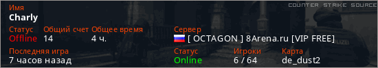 Последний раз был в сети 10 минут назад Игрок с таким ником замечен на 9 серверах