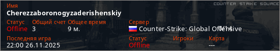 Играет на Counter Strike Source сервере. Страна: РоссияПервый раз замечен 19:34 14.11.2025