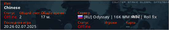 Играет на Counter Strike Global Offensive сервере. Страна: РоссияПервый раз замечен 07:29 24.04.2025