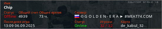 Последний раз был в сети 13:09 06.09.2025 Игрок с таким ником замечен на 17 серверах