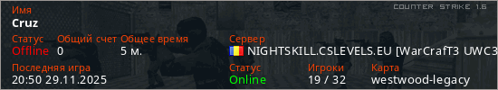 Играет на Counter Strike 1.6 сервере. Страна: РумынияПервый раз замечен 20:46 29.11.2025