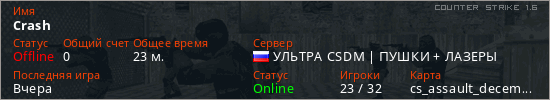 Последний раз был в сети Вчера Игрок с таким ником замечен на 25 серверах