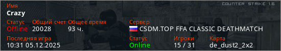 Играет на Counter Strike 1.6 сервере. Страна: РоссияПервый раз замечен 22:35 11.11.2019