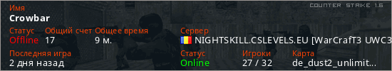 Последний раз был в сети 2 дня назад Игрок с таким ником замечен на 4 серверах