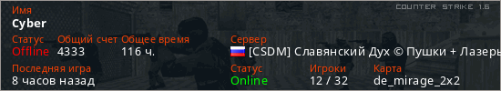 Играет на Counter Strike 1.6 сервере. Страна: РоссияПервый раз замечен 00:15 27.02.2024