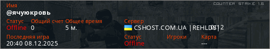 Играет на Counter Strike 1.6 сервере. Страна: УкраинаПервый раз замечен 20:32 08.12.2025