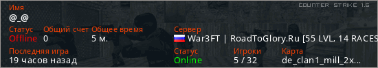 Играет на Counter Strike 1.6 сервере. Страна: РоссияПервый раз замечен 19:29 09.03.2026