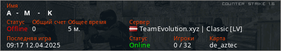 Общая информация игрока