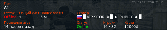 Играет на Counter Strike 1.6 сервере. Страна: РоссияПервый раз замечен 10:36 17.12.2025