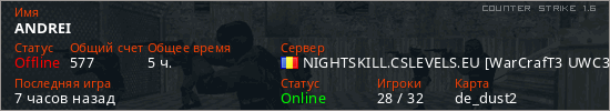 Играет на Counter Strike 1.6 сервере. Страна: РумынияПервый раз замечен 18:32 02.12.2024