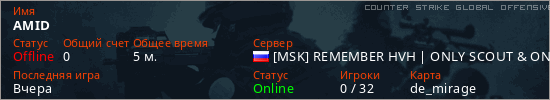 Играет на Counter Strike Global Offensive сервере. Страна: РоссияПервый раз замечен 15:37 19.12.2025