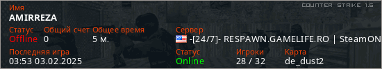 Играет на Counter Strike 1.6 сервере. Страна: СШАПервый раз замечен 03:51 03.02.2025