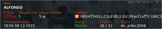 Последний раз был в сети 18:56 08.12.2025 Игрок с таким ником замечен на 8 серверах