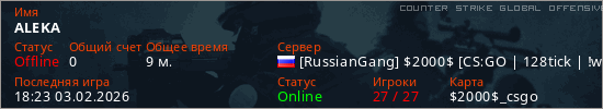 Играет на Counter Strike Global Offensive сервере. Страна: РоссияПервый раз замечен 17:23 31.01.2026