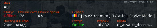 Играет на Counter Strike 1.6 сервере. Страна: РумынияПервый раз замечен 19:43 29.10.2024