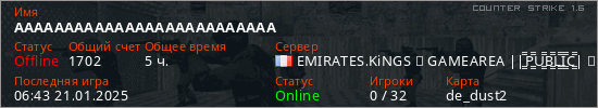 Играет на Counter Strike 1.6 сервере. Страна: ФранцияПервый раз замечен 05:12 20.01.2025
