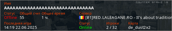 Играет на Counter Strike 1.6 сервере. Страна: РумынияПервый раз замечен 23:47 23.11.2022