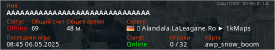 Последний раз был в сети 08:45 06.05.2025 Игрок с таким ником замечен на 29 серверах
