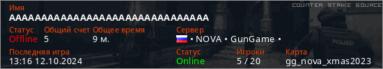 Играет на Counter Strike Source сервере. Страна: РоссияПервый раз замечен 23:11 22.07.2024