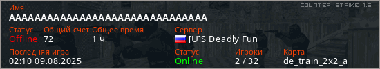 Играет на Counter Strike 1.6 сервере. Страна: РоссияПервый раз замечен 13:00 24.08.2022