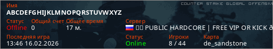 Последний раз был в сети 13:46 16.02.2026 Игрок с таким ником замечен на 4 серверах