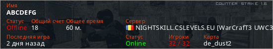 Последний раз был в сети 2 дня назад Игрок с таким ником замечен на 4 серверах