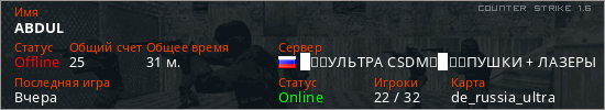 Последний раз был в сети Вчера Игрок с таким ником замечен на 14 серверах