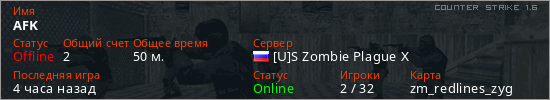 Играет на Counter Strike 1.6 сервере. Страна: РоссияПервый раз замечен 18:06 24.03.2026