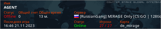 Играет на Counter Strike Global Offensive сервере. Страна: РоссияПервый раз замечен 17:35 19.11.2023