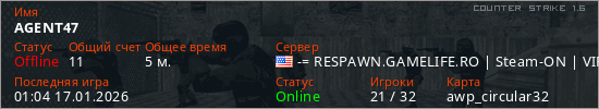 Играет на Counter Strike 1.6 сервере. Страна: СШАПервый раз замечен 00:58 17.01.2026