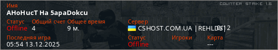 Играет на Counter Strike 1.6 сервере. Страна: УкраинаПервый раз замечен 21:33 05.12.2025
