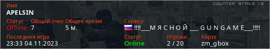 Играет на Counter Strike 1.6 сервере. Страна: РоссияПервый раз замечен 21:21 04.11.2023