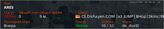 Последний раз был в сети Вчера Игрок с таким ником замечен на 35 серверах