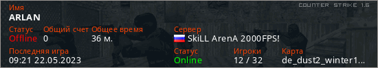 Играет на Counter Strike 1.6 сервере. Страна: РоссияПервый раз замечен 09:15 22.05.2023