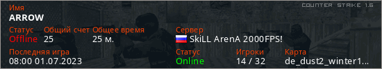 Играет на Counter Strike 1.6 сервере. Страна: РоссияПервый раз замечен 11:08 16.11.2022