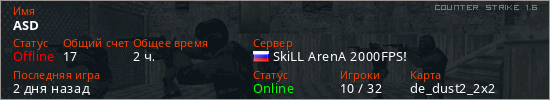 Играет на Counter Strike 1.6 сервере. Страна: РоссияПервый раз замечен 23:41 05.02.2023
