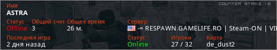 Играет на Counter Strike 1.6 сервере. Страна: СШАПервый раз замечен 23:37 22.01.2026
