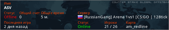 Играет на Counter Strike Global Offensive сервере. Страна: РоссияПервый раз замечен 15:49 08.03.2026