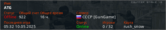 Играет на Counter Strike 1.6 сервере. Страна: РоссияПервый раз замечен 18:47 21.06.2023