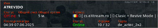 Играет на Counter Strike 1.6 сервере. Страна: РумынияПервый раз замечен 04:35 07.06.2025
