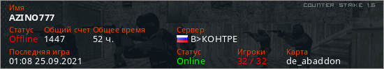 Последний раз был в сети 01:08 25.09.2021 Игрок с таким ником замечен на 3 серверах