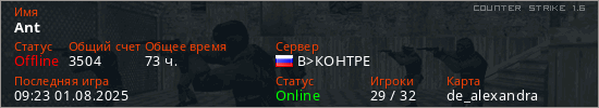 Последний раз был в сети 09:23 01.08.2025 Игрок с таким ником замечен на 22 серверах