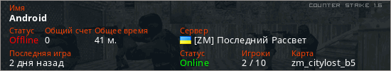 Играет на Counter Strike 1.6 сервере. Страна: УкраинаПервый раз замечен 23:02 17.03.2026