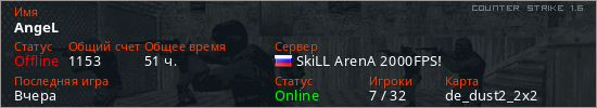 Играет на Counter Strike 1.6 сервере. Страна: РоссияПервый раз замечен 17:27 04.11.2023