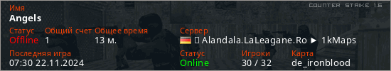 Играет на Counter Strike 1.6 сервере. Страна: ГерманияПервый раз замечен 08:22 20.11.2024