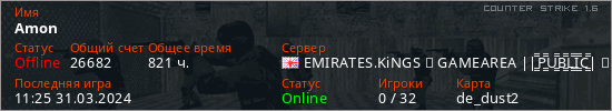 Последний раз был в сети 11:25 31.03.2024 Игрок с таким ником замечен на 21 сервере
