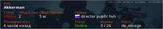 Играет на Counter Strike Global Offensive сервере. Страна: РоссияПервый раз замечен 23:25 25.03.2026