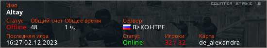 Последний раз был в сети 16:27 02.12.2023 Игрок с таким ником замечен на 5 серверах