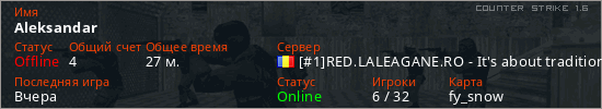 Играет на Counter Strike 1.6 сервере. Страна: РумынияПервый раз замечен 12:07 10.03.2023