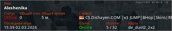 Играет на Counter Strike 1.6 сервере. Страна: ГерманияПервый раз замечен 15:35 02.03.2026